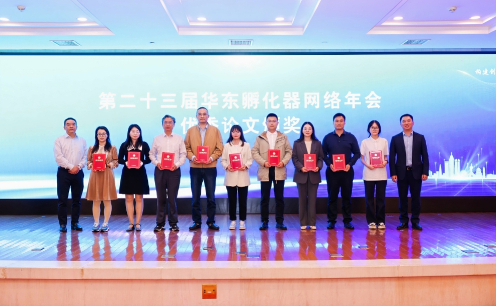 為展現(xiàn)華東各地科技雙創(chuàng)孵化載體建設(shè)與發(fā)展的新風(fēng)采,進(jìn)一步展示孵化成果、分享孵化經(jīng)驗(yàn)、促進(jìn)資源共享,大會(huì)圍繞本屆年會(huì)主題“構(gòu)建創(chuàng)孵新生態(tài),培育新質(zhì)生產(chǎn)力”開(kāi)展論文征集,園區(qū)投稿的《提質(zhì)增效,聚焦創(chuàng)新要素賦能產(chǎn)業(yè)升級(jí),打造新時(shí)期孵化器高質(zhì)量發(fā)展新高地》一文獲得優(yōu)秀獎(jiǎng),并舉行頒獎(jiǎng)儀式。