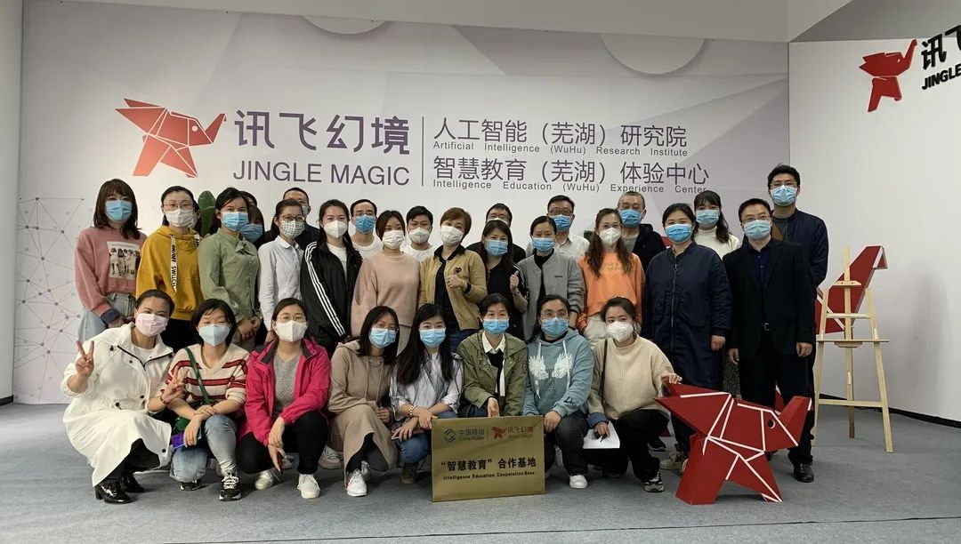 鏡湖區(qū)副區(qū)長束曉偉及政府領導、相關單位負責人,訊飛幻境政企事業(yè)部執(zhí)行總裁李寧、中國移動蕪湖分公司總經理楊震等出席并見證簽約儀式,共同為雙方“智慧教育合作基地”揭牌。