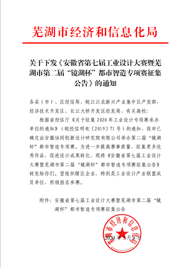 為進(jìn)一步加快蕪湖市現(xiàn)代制造產(chǎn)業(yè)的升級(jí)轉(zhuǎn)型,加速工業(yè)設(shè)計(jì)與制造的融合,培養(yǎng)工業(yè)設(shè)計(jì)人才,決定舉辦安徽省第七屆工業(yè)設(shè)計(jì)大賽暨蕪湖市第二屆“鏡湖杯”都市智造專(zhuān)項(xiàng)賽。