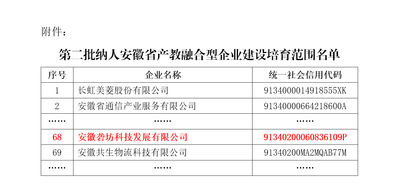 近期,省發展改革委、省教育廳、省人力資源社會保障廳公布第二批安徽省產教融合型企業建設培育范圍名單,安徽礱坊科技發展有限公司成功入選。