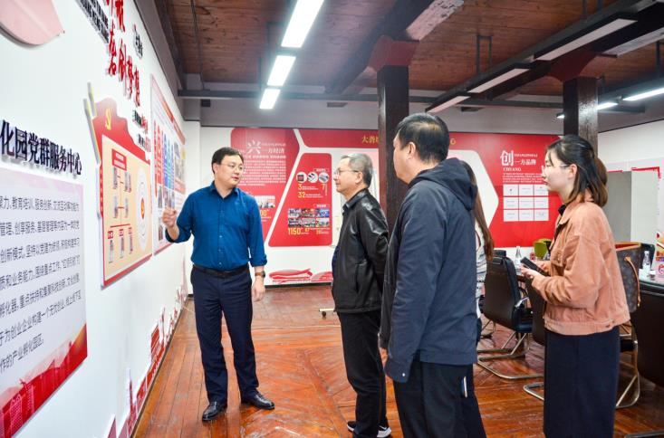 11月18日,鏡湖區委常委、組織部部長張正飛、區科技局副局長來園指導非公黨建工作,園區黨委書記卞國琛陪同參觀園區黨群服務中心,并作工作匯報。