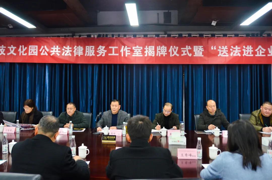 12月11日,大礱坊科技文化園公共法律服務工作室揭牌儀式暨“送法進企業”活動在園開展,區司法局、區委政法委、區法院、區檢察院、區工商聯、區經信局、區委常委、政法委書記魏峰及各成員單位、園區負責人、企業代表等50余人出席活動。